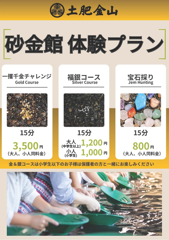 2026年4月1日 9:00より、砂金採り・宝石採り体験の内容を一部変更いたします。