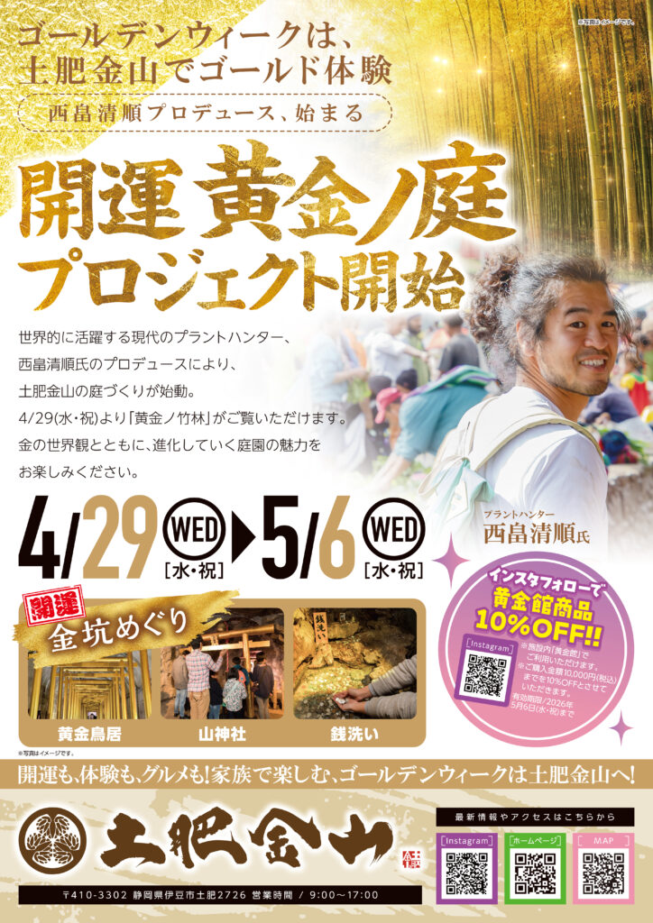 土肥金山では、ゴールデンウィーク期間中、特別なイベントを開催いたします。